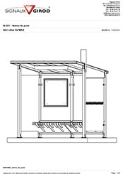 | 2 types de rangement vélos | Râtelier vélos : aluminium 4 mm plié. Fixation sur la structure de l’abri. Support vélos : structure tube aluminium 80 x 80 x 4 mm, arceau en aluminium 5 mm |