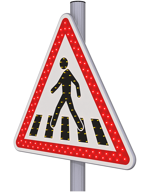 L’association d’un listel renforcé par une double rangée de leds rouges et d’un symbole rehaussé par des leds ambres apporte un meilleur contraste de jour comme de nuit.