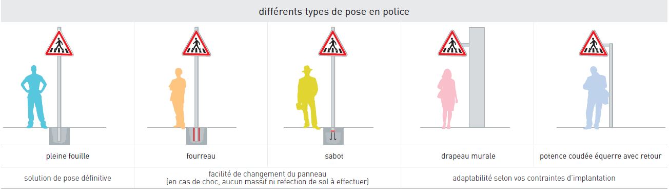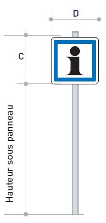 • en agglomération : 2 mètres sous panneau + 0,40 m en sol (arrondi au 500 mm supérieur).