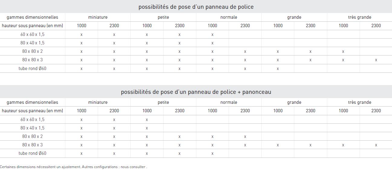 La section du support doit être adaptée au nombre et à la taille des panneaux à fixer sur celui-ci.